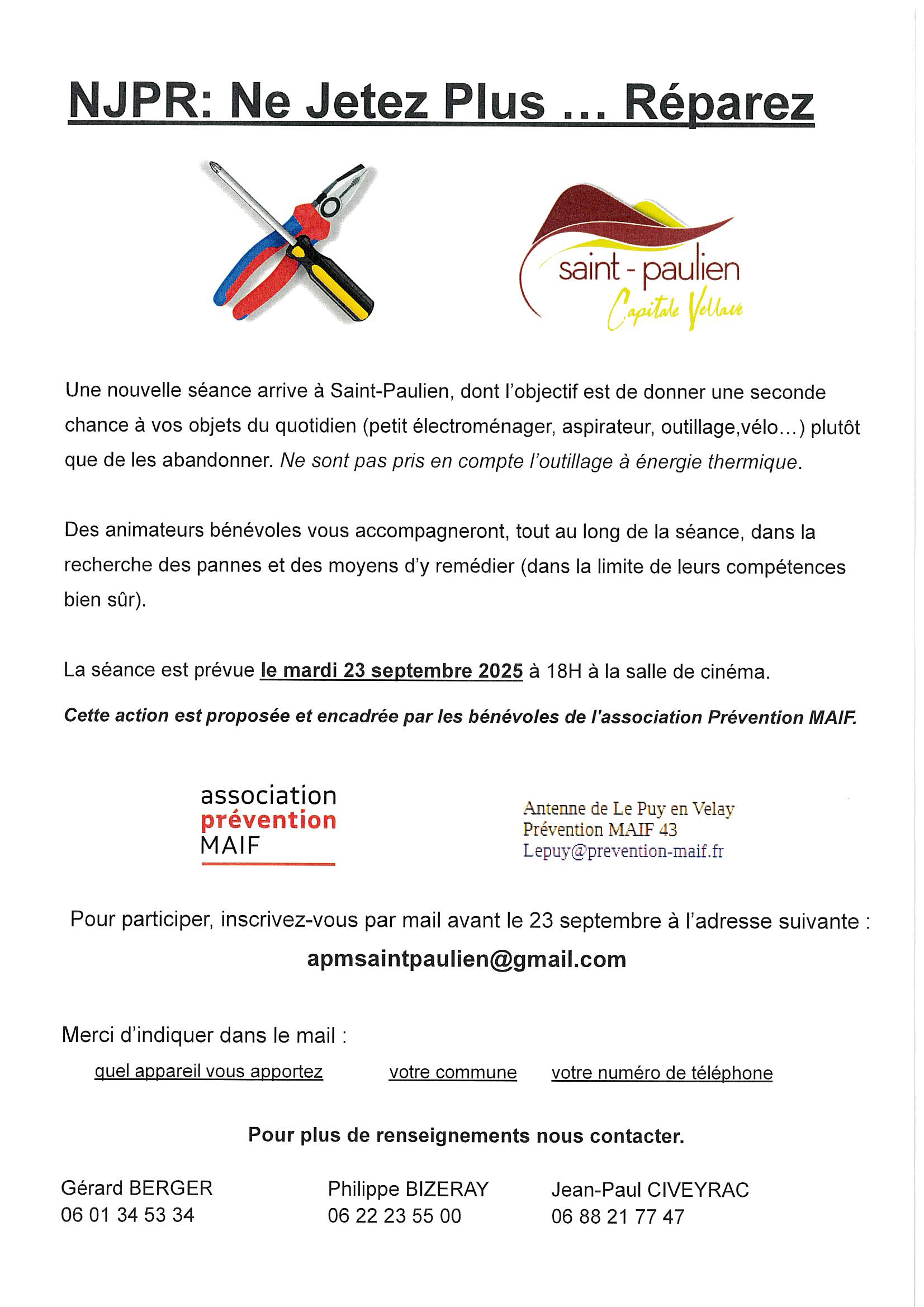 Inscription par mail : apmsaintpaulien@gmail.com.